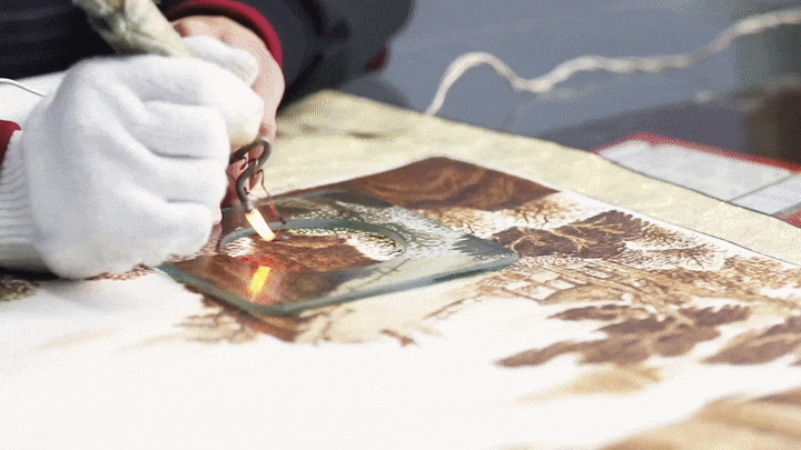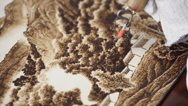 烙画艺人使用高温烙具