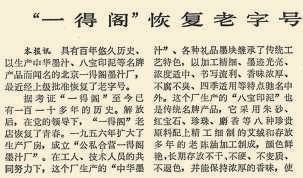 1979年,曾被改名为“北京墨汁厂”“北京文化用品厂”的北京一得阁墨汁厂获市经委批准,恢复“一得阁墨汁厂”和门市部。随后,该厂成立了恢复传统产品研制小组,恢复了中华墨汁、八宝印泥、礼品墨块等产品的生产。(1979年5月31日《北京日报》1版,《“一得阁”恢复老字号》)
