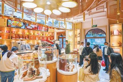 老字号稻香村建造的零号店成了热门打卡点。2022年春节前,店里推出包含兔子外形的“福兔菓”、粉色和绿色搭配的“迎春绣球”等精美糕点的“福兔献瑞”礼盒,以及狮子门墩、龙头门环、胡同门牌等胡同系列点心,成为许多市民眼中颇具京味儿特色的伴手礼。而人们在这里排长队购物的火爆场面早已成为京城一景,“周末至少得排一小时,到晚上8点打烊时,柜台里基本空了,还老有人非要进来看看,把剩下能买的都买走。”店员如是说。(2023年5月8日《北京日报》1版,《老号新潮 消费磁石》)